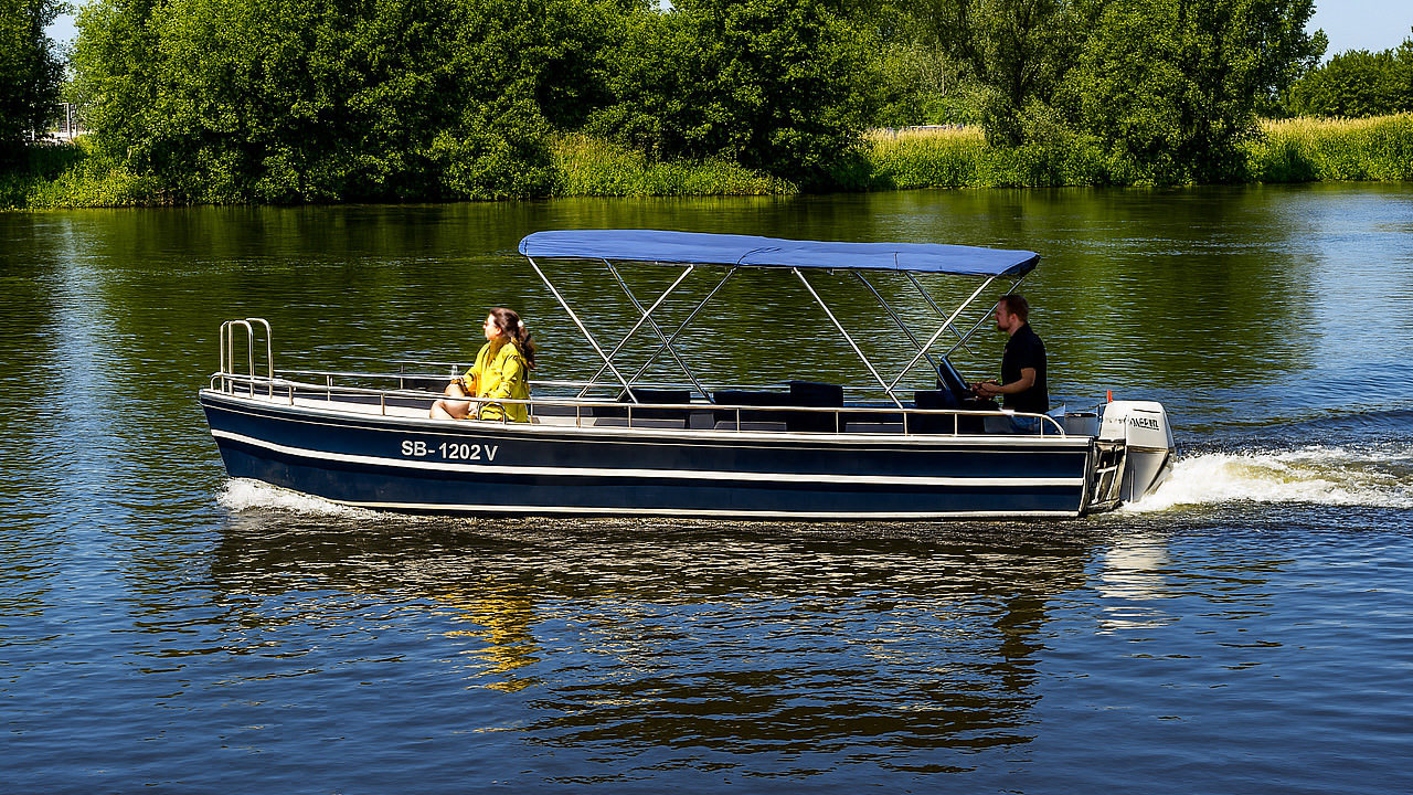 Einsteigen und lost geht es auf der Saar! Unsere neuen, komfortablen und führerscheinfreien Motorboote bieten dir ein ganz neues Freizeitvergnügen ab Merzig auf der Saar!